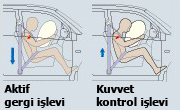 Aktif gergili ve kuvvet kontrollü ön emniyet kemeri