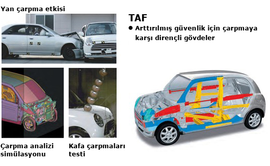 Bir kaza halinde araç içerisindeki kişileri koruyan güvenlik işlevleri, bir otomobilin seçilmesi sırasında temel koşullardan birisidir. Daihatsu, araç içerisindeki kişinin gördüğü hasarı en aza indiren TAF (Toplam Gelişmiş Fonksiyonlu) gövde yapısı kullanmaktadır. Çarpışmayı yayma özelliği kullanılarak gövde yapısı güçlü ama daha hafif ve darbe emici yapıya sahip olmuştur. Evrimine devam eden TAF aracılığıyla sağlam bir kabin ve daha düşük ağırlığa sahip bir araç mümkün kılınmıştır.