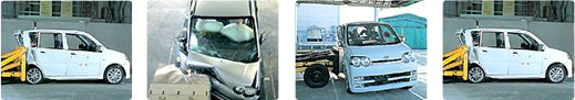 Daihatsu araçları, hayal edebileceğiniz en zor testlerden geçirilirler. Bunun bir sonucu olarak, araçlarımız kolaylıkla Japonya ve Avrupa’da uygulanmakta olan en katı çarpışma güvenliği standartlarını karşılarlar. Mümkün olabilecek her kaza senaryosunu göz önünde bulundurarak araç gövdelerini tasarlamaktayız. Araçlarımızın, içerisinde bulunan kişileri ve hatta bir kaza anında yayaları gerçekten koruyabileceğinden emin olmak üzere gerçekçi çarpışma testleri yapıyoruz.